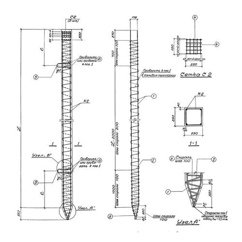 СУ 4,5-25  Свая цельная сплошного квадратного сечения с ненапрягаемой арматурой, трещиностойкая  (Серия 1.011-1).