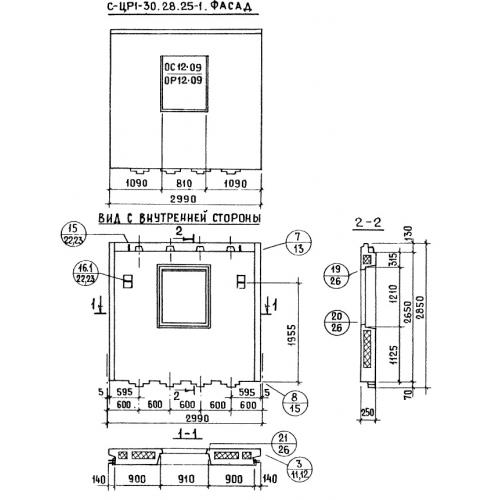 Панели стеновые цокольные СЦР1-30.28.25-1  (Серия 1.117-12с).